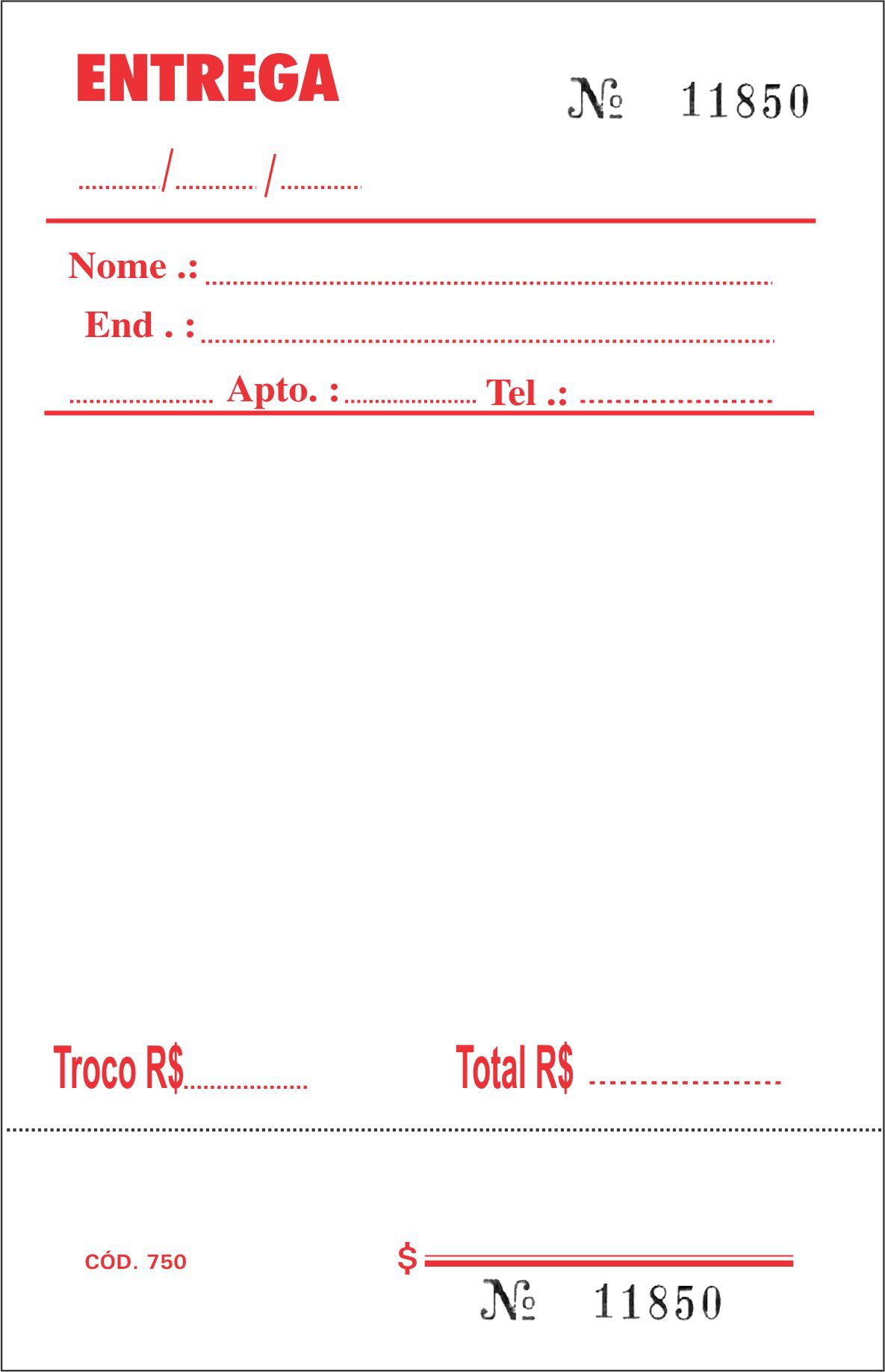 20 blocos Confeccionadas em Papel Auto-Copy, 50x2 vias, numeradas de 001 á 1.000